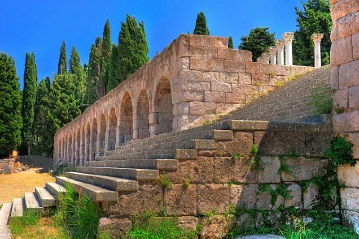 Asklepion used to serve as a place of worship dedicated to Asklipios but also as a therapeutic center for patients who were in need of treatment and relaxation. It consists of four connecting levels and the second level, where the medical school is said to have been housed, is known for its arches and statues dating back to the 4th century BC.
